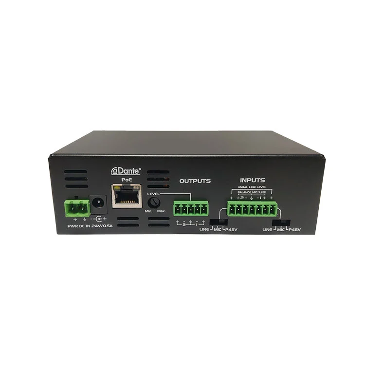 Combinado con nuestros otros productos Dante, como el micrófono Dante, Dante DSP, el altavoz Dante, obtendrá un sistema de audio perfecto